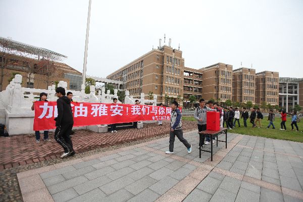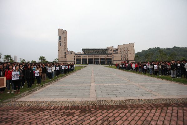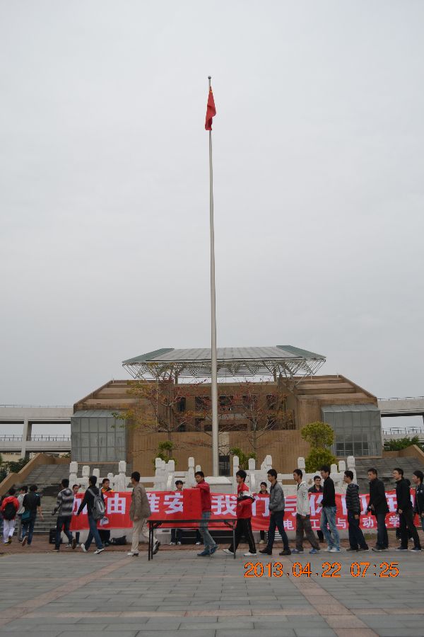 天空低垂,全场师生为在雅安地震中遇难的同胞默哀,同学们手托“雅安平安,中国加油!”的牌子低头为灾区人民祈福。默哀完毕,在全体师生的注目礼和雄壮的国歌声中,yl7703永利官网国旗护卫队将五星红旗冉冉升起。院学生会主席林凯同学在庄严的五星红旗下代表全院学子发言,号召大家把握海西建设契机、共筑美丽福大,勇于逐梦、放飞理想,把个人理想与国家命运紧密相连,做对社会有益的人,齐心实现中国梦!
