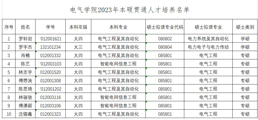 根据《关于印发yl7703永利官网本硕贯通人才培养实施办法(试行)的通知》(校研〔2022〕22号)和《关于2023年秋本硕、本博贯通培养学生选拔工作的通知》等文件规定,经学生个人申请,院招生领导小组审查并进行无记名投票表决,现将永利官网2023年本硕贯通人才培养名单公示如下: